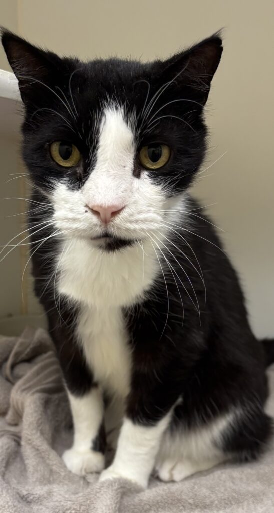 Give a big hello to Teddy (A003239), a neutered Domestic Short Hair with a beautiful Tuxedo coat. Teddy is about nine years old, friendly and handsome. His formal black and white coat is accented with a pink nose and small patch on his chin. Although Teddy is a grown up, he has his silly and playful moments. He is in the market for a new family and forever home. Come on in and get acquainted with Teddy.  He will make a wonderful companion for someone!