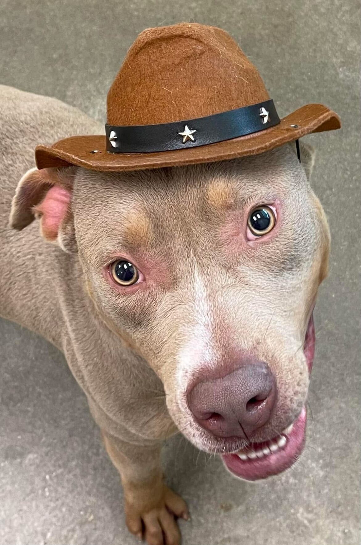 Meet Cowboy (A039112) an 11 month old Pit Bull who didn’t have the best start in life. Abandoned as a pup, this sweet pup is playful, energetic, and is ready for a new adventure. With his beautiful coat and love for wearing hats, he’s charming as they come. Cowboy is now looking for a forever home where he can share all his love and joy. Come on in and meet him.