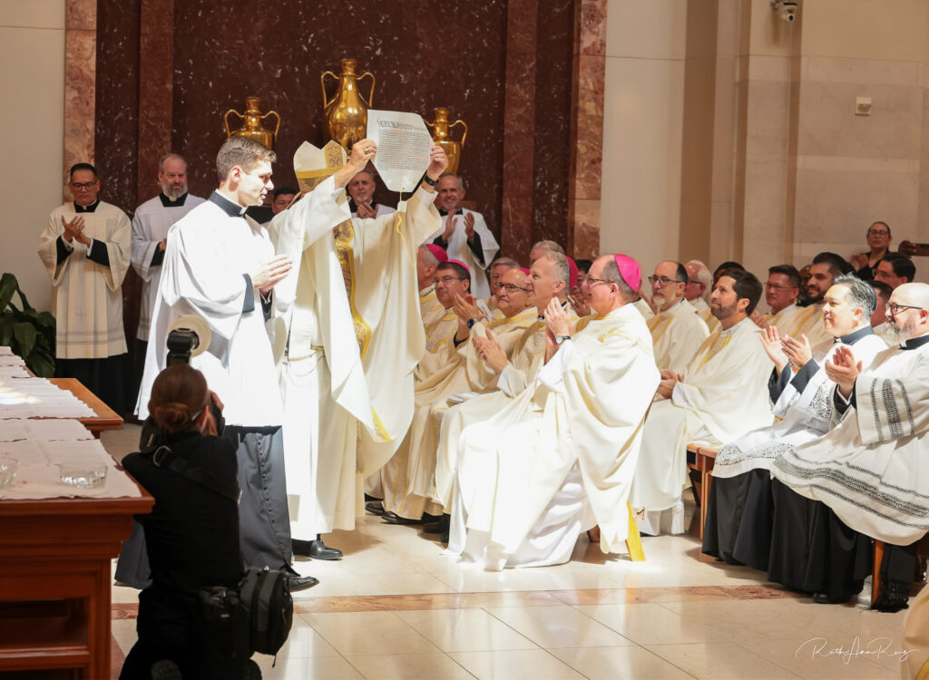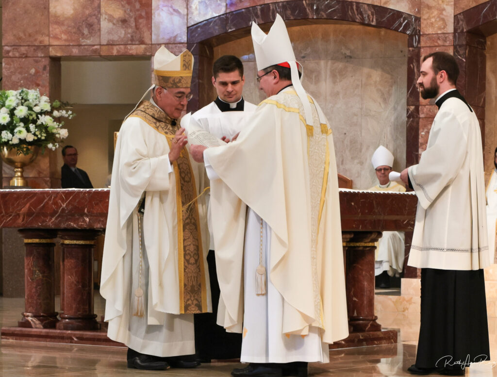 His Eminence Christophe Louis Yves Georges Cardinal Pierre, Apostolic Nuncio to the United States of America, read the Apostolic Letter of Appointment prior to the new archbishop presenting it for all to see and inspect.