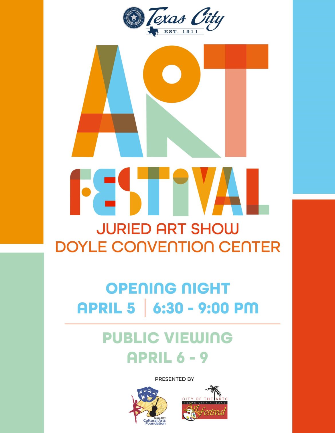 In addition to opening night, the Texas City Art Festival will also be open for public viewing on: