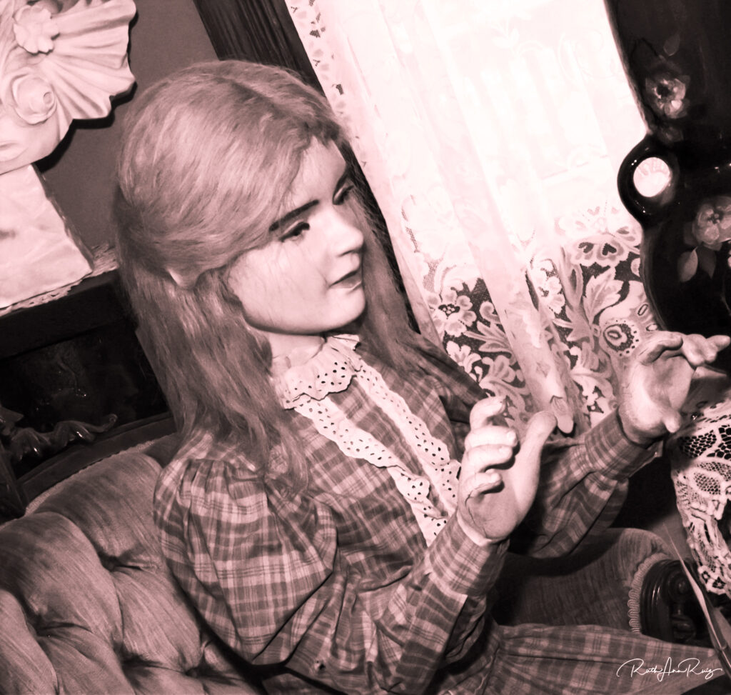 Antique chandeliers worth thousands of dollars provide overhead lighting in his historic Victorian home. Pricilla, a 100-plus-year-old mannequin from Chicago, sits in his parlor. Her hair is made from that of a horse, and her face is made of papier-mâché