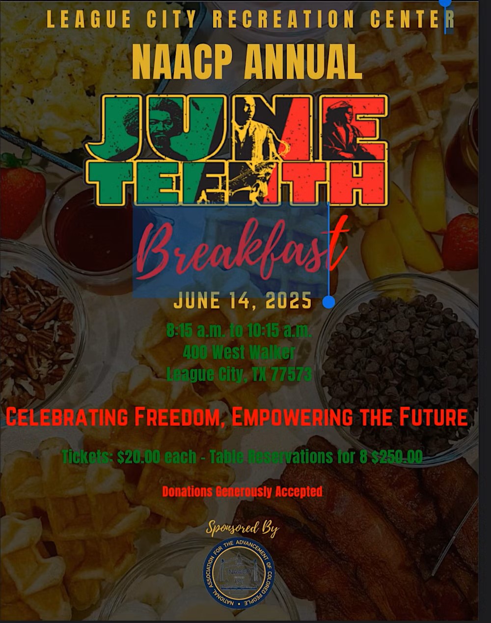 We are excited to announce the Annual Juneteenth Breakfast hosted by the Dickinson-Bay Area NAACP! Join us for an inspiring morning of reflection, fellowship, and celebration as we commemorate Juneteenth, a pivotal moment in American history.