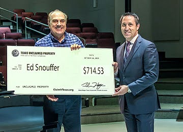 Comptroller Hegar and Ed Snouffer, whose $714.53 put the Unclaimed Property Division over the $1 billion mark.