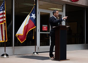 Hegar at the re-dedication of the LBJ building in April 2025.