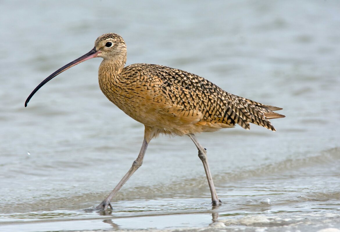 The Long-billed Curlew, which spends its winters on the Texas coast is a good example of a probing bird. As the largest North American shorebird, they need plenty of food, and they find that food with their exceptionally long beak! With a beak as long as theirs, they can probe around holes for burrowing species such as crabs, shrimp, or worms. Other shorebirds like godwits and yellowlegs also use probing techniques, but their bills are not as long as the curlew, and they can’t forage as deep into the mud.