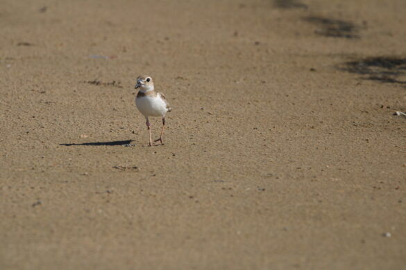 Photo 5832: A Wilson’s Plover chick hatched from “C5” this year with a 5-color band combo and a USGS aluminum band.