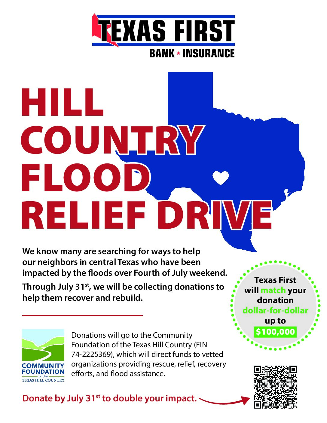 For more information about the matching fund and how to contribute, please visit www.texasfirst.bank/flood-recovery.
