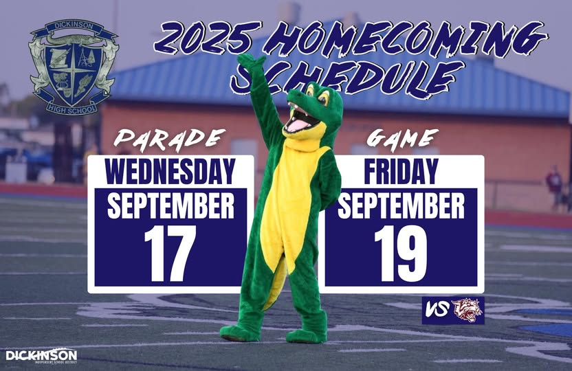 It’s never too early to think about Homecoming if you’re part of Dickinson ISD. The Gators will have their 2025 Homecoming parade on September 17, with the game against Clear Creek being played at Sam Vitanza Stadium at 7 PM on September 19.
