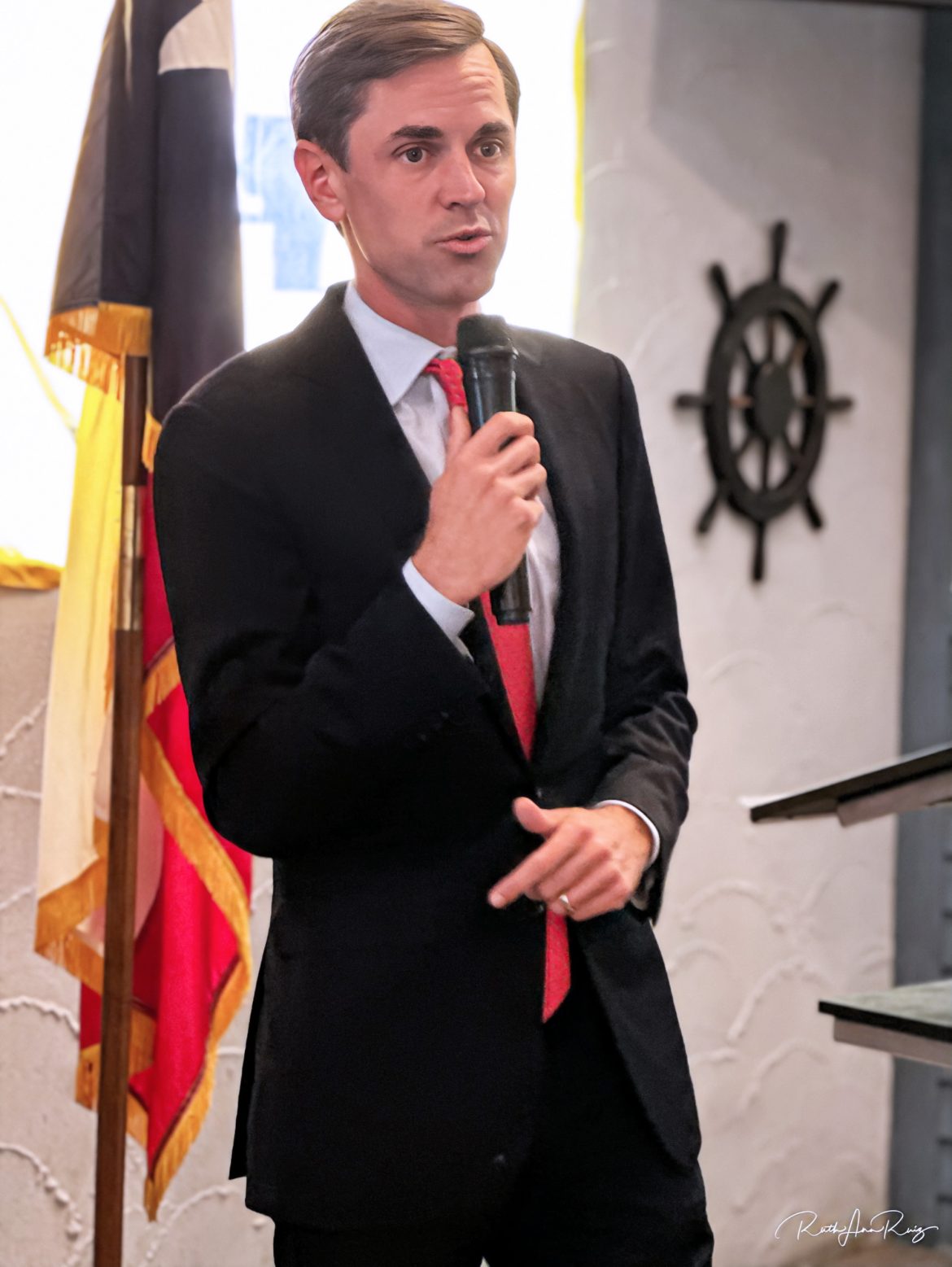 Coastal Grill’s meeting room area was filled to overflowing Thursday. The Galveston Island Pachyderm Club hosted Sen. Mayes Middleton as a guest speaker for its monthly meeting.