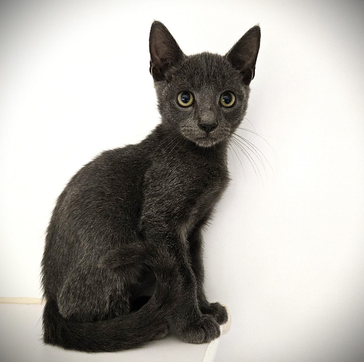 Give a big hello to Lucian (A041495), who is a 3 month old male Domestic Short Hair/Russian Blue mix. Lucian is a handsome kitten and shows off his deep blue coat for photo sessions. His pewter-colored eyes are filled with kitty mischief and secrets. Wave a feather wand or toss some toys, and the dignified “model” reverts to an energetic, playful, friendly kitten. If you are looking for cuddles, fun and a gorgeous kitty come on in and ask to meet Lucien!