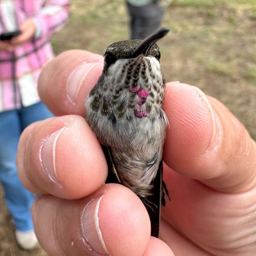 Since it is fall migration, and one of our favorite migrants is the Ruby-throated Hummingbird, here’s a hummingbird hybrid example. I recently learned that when Ruby-throated Hummingbirds and Black-chinned Hummingbirds breed, the hybrid young they create often have pink gorget (throat) feathers! When I recently had the opportunity to band one (under federal and state permits), I didn’t know what it was. The pink reminded me of a Calliope Hummingbird, but it was the size of Ruby-throated. I was very confused! There is an area through central and west Texas, where the Ruby-throated and Black-chinned ranges overlap, where hybrids are likely. I also learned that these hybrids can breed with either pure Ruby-throated or Black-chinned, but interestingly, they seem to mate more with Black-chinned.