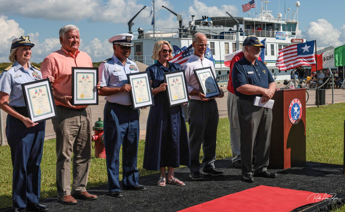 The Texans honored on Saturday were: J. Barto Arnold, General Land Office Commissioner Dawn Buckingham, Coast Guard Cmdr. Glenn Colaco, Port of Galveston Director and CEO Rodger Rees, Coast Guard Capt. Nicole Rodriguez, and not present at the ceremony but commissioned by the governor was Chris Wiernicki.