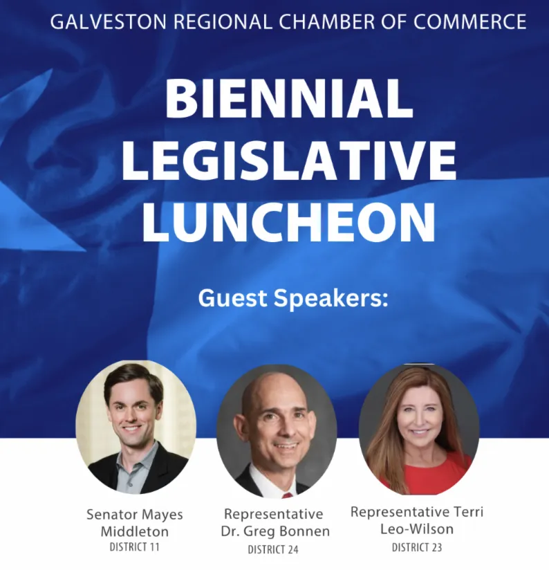The Galveston Regional Chamber of Commerce will host its Biennial Legislative Luncheon on Thursday, October 16, at the San Luis Resort, Spa & Conference Center, located at 5222 Seawall Blvd.