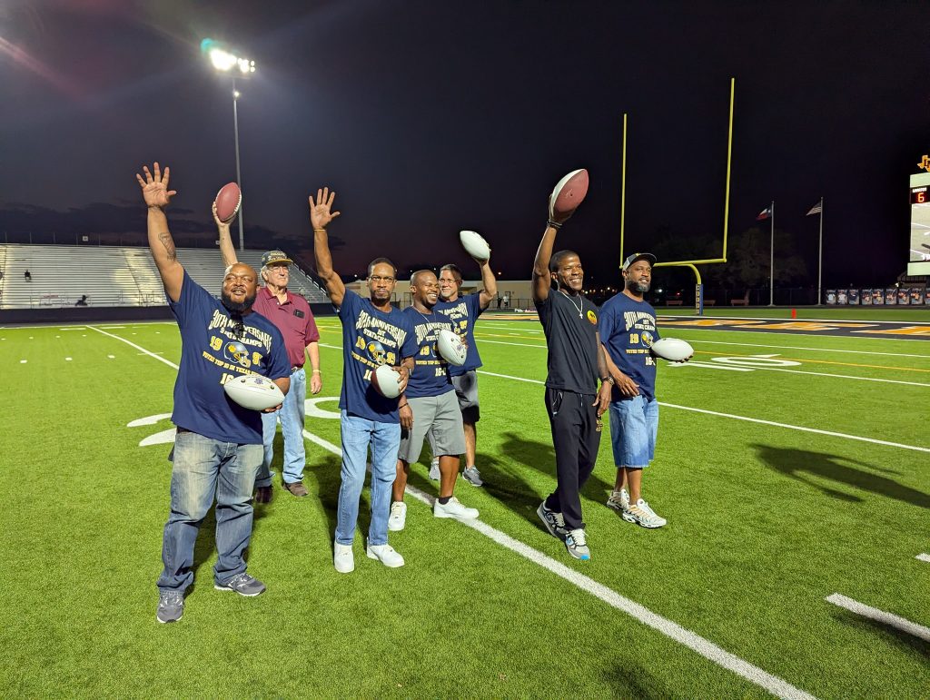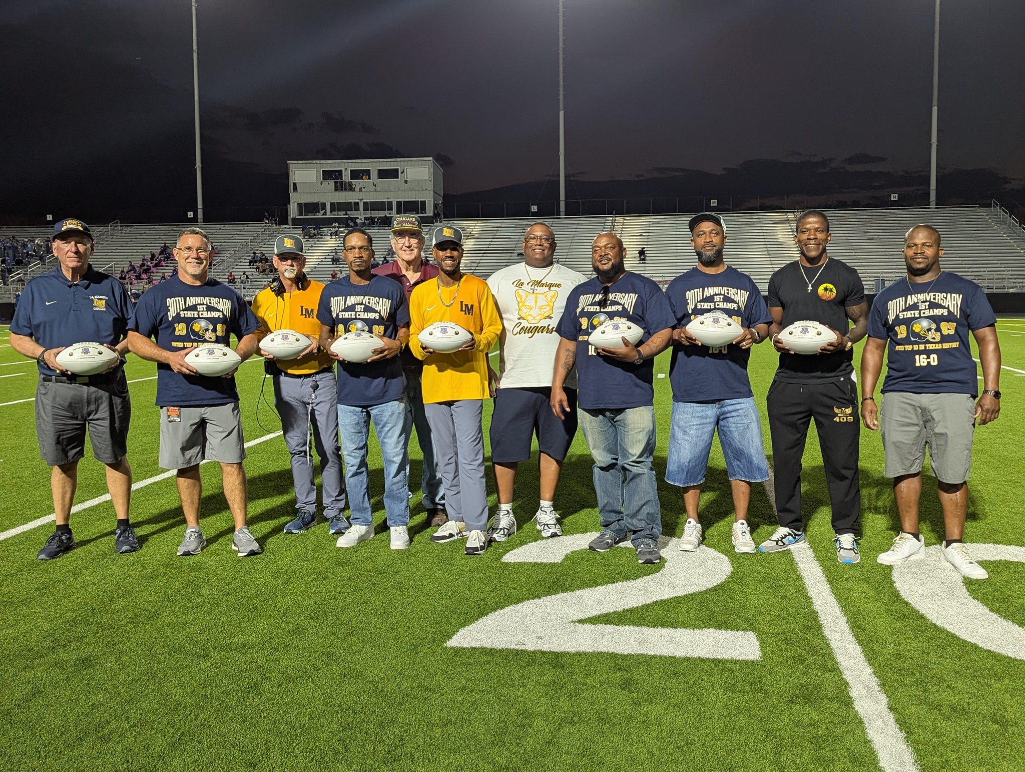 Members of La Marque’s 1995 4A state championship football team were honored at halftime of the Cougars’ 36-6 win over Wharton on Friday. It was the first of three state titles for the Coogs, who won five between 1995 and 2006.