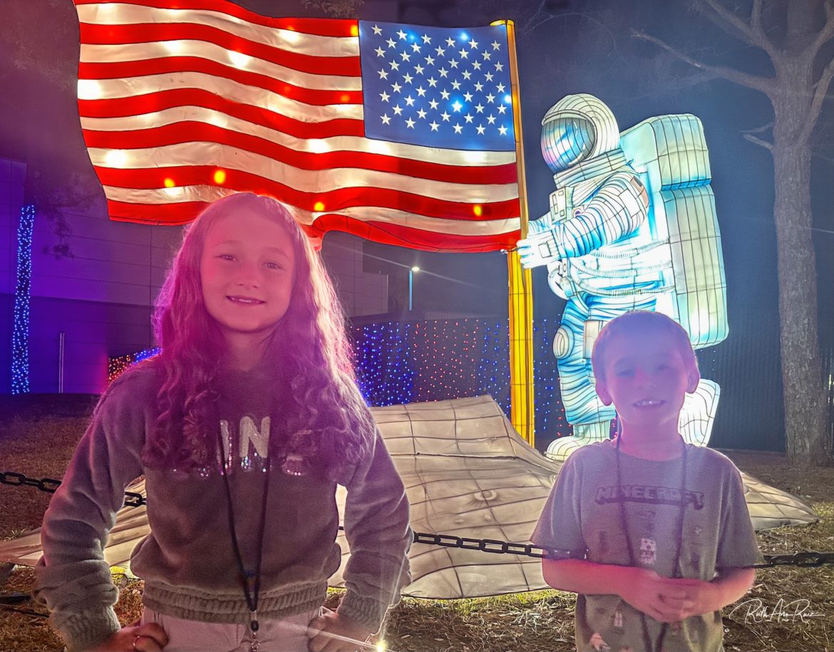 River Swanson and her brother Henry from League City skipped along the galaxy taking time to appreciate the many displays of astronomical Christmas décor.