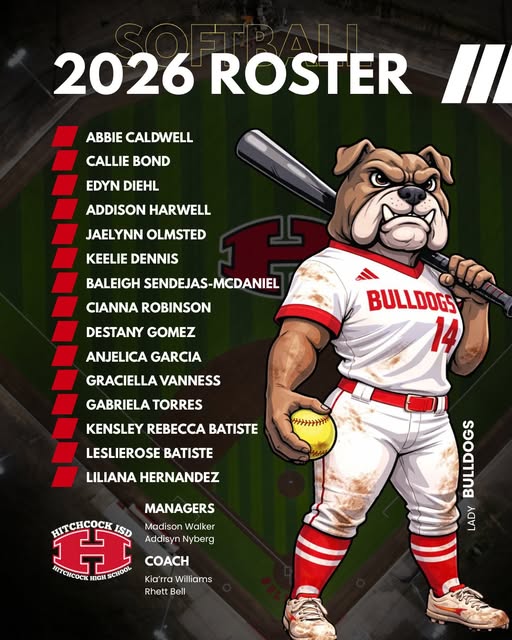 Hitchcock’s softball team for the 2026 season has been announced. The Bulldogs will visit Royal for a scrimmage on Tuesday at 5:30 PM.