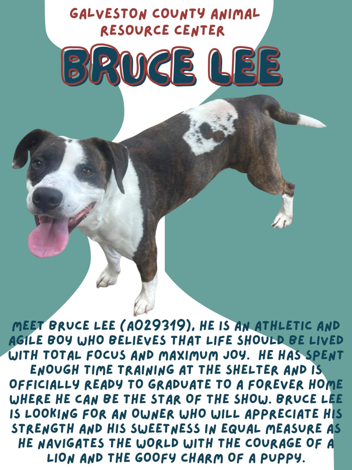 Meet Bruce Lee (A029319), He is an athletic and agile boy who believes that life should be lived with total focus and maximum joy.  He has spent enough time training at the shelter and is officially ready to graduate to a forever home where he can be the star of the show. Bruce Lee is looking for an owner who will appreciate his strength and his sweetness in equal measure as he navigates the world with the courage of a lion and the goofy charm of a puppy.
