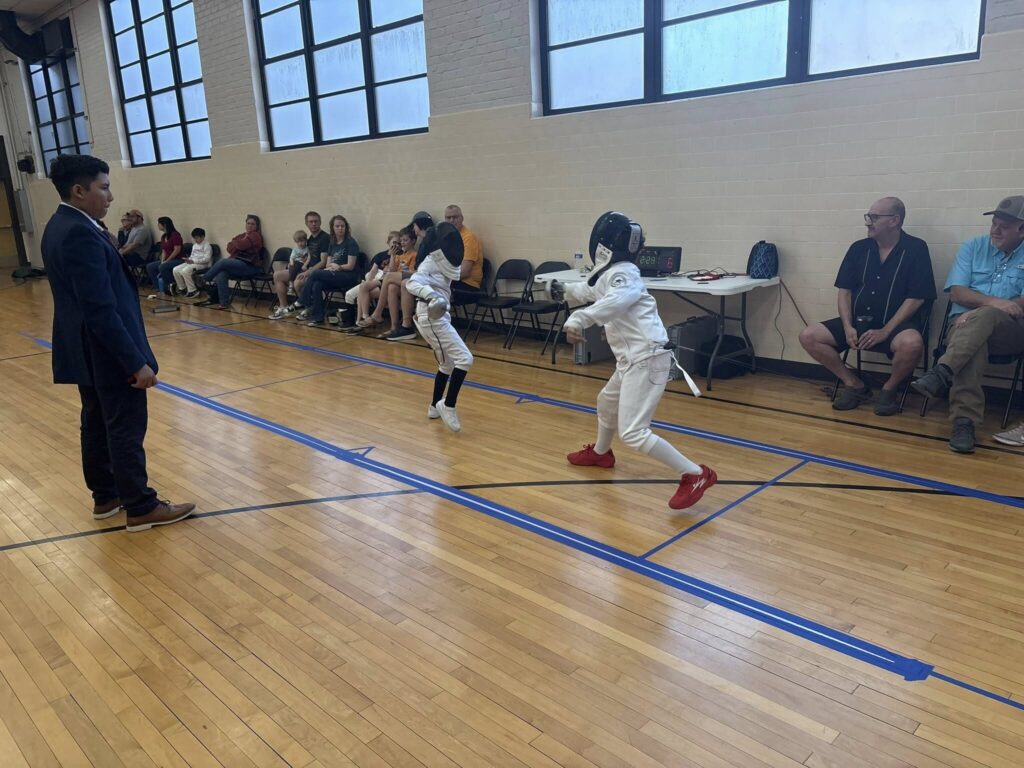 This years’ tournament consisted entirely of epee competitions (no foil or sabre fencing). The major event at the tournament was a senior (teens/adults) mixed event. The winner of the event, Constantin MIcu of Dickinson received a ranking of D2026 from USA Fencing, the national governing body for the sport. USA Fencing rankings run from an A rank (the highest) down to an E (the lowest). Most fencers have no ranking and are designated as U (unranked). Second place went to Mason Elkin of Santa Fe, who renewed his E.