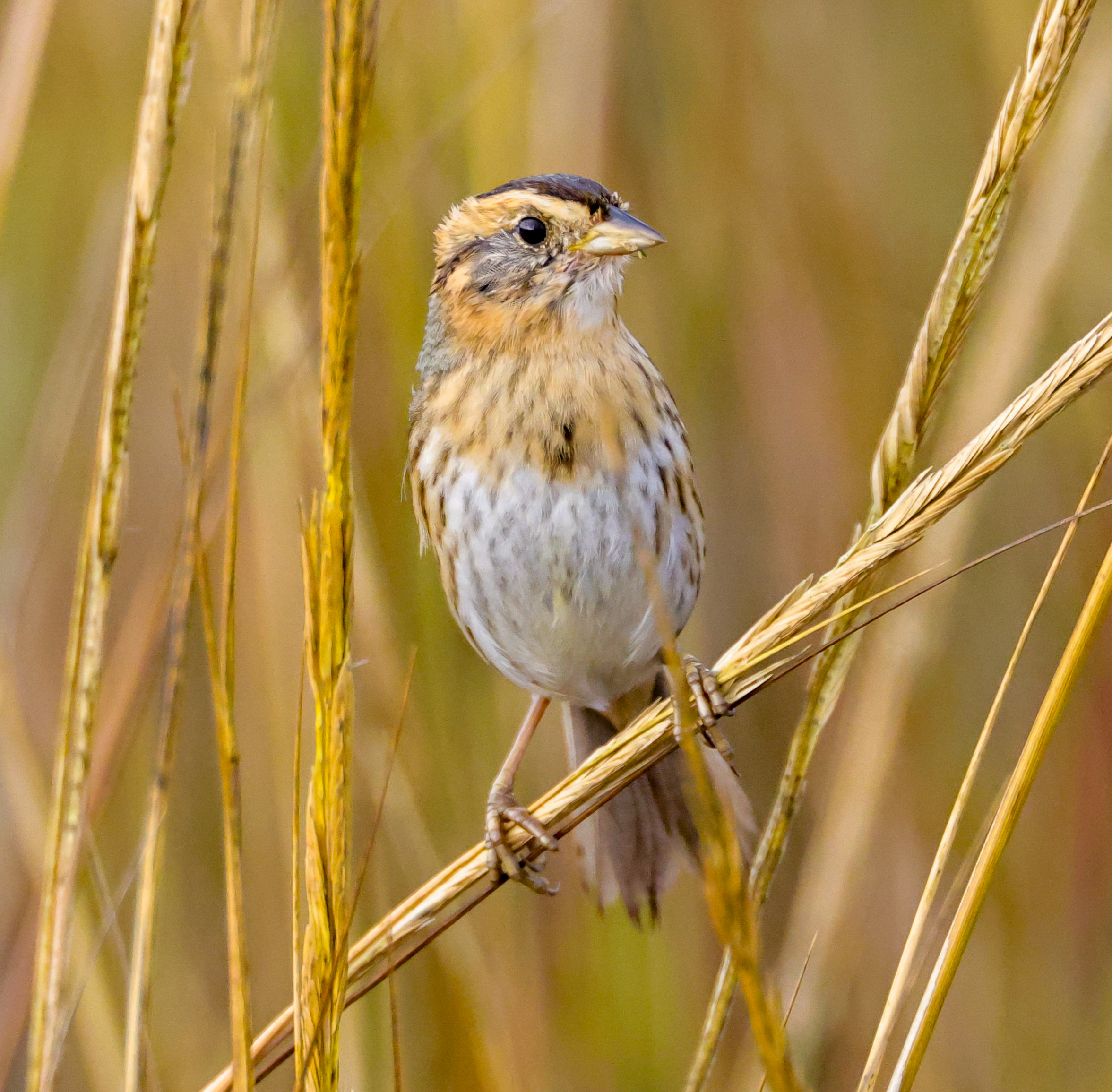 Sedge Wrens and Marsh Wrens are some of the tiniest birds.  They sport cryptic brown plumages and flit deep in the thick vegetation, at times landing in the open for a brief glimpse.  As with most of these coastal marsh birds they are best detected when they call or sing.  There are several species of rails also. In sized order they are King, Clapper, Virginia’s, Sora, Yellow, and Black Rails.  The last two are super hard to find as they are the most secretive.  Few birders ever get to add them to their life list of birds seen.