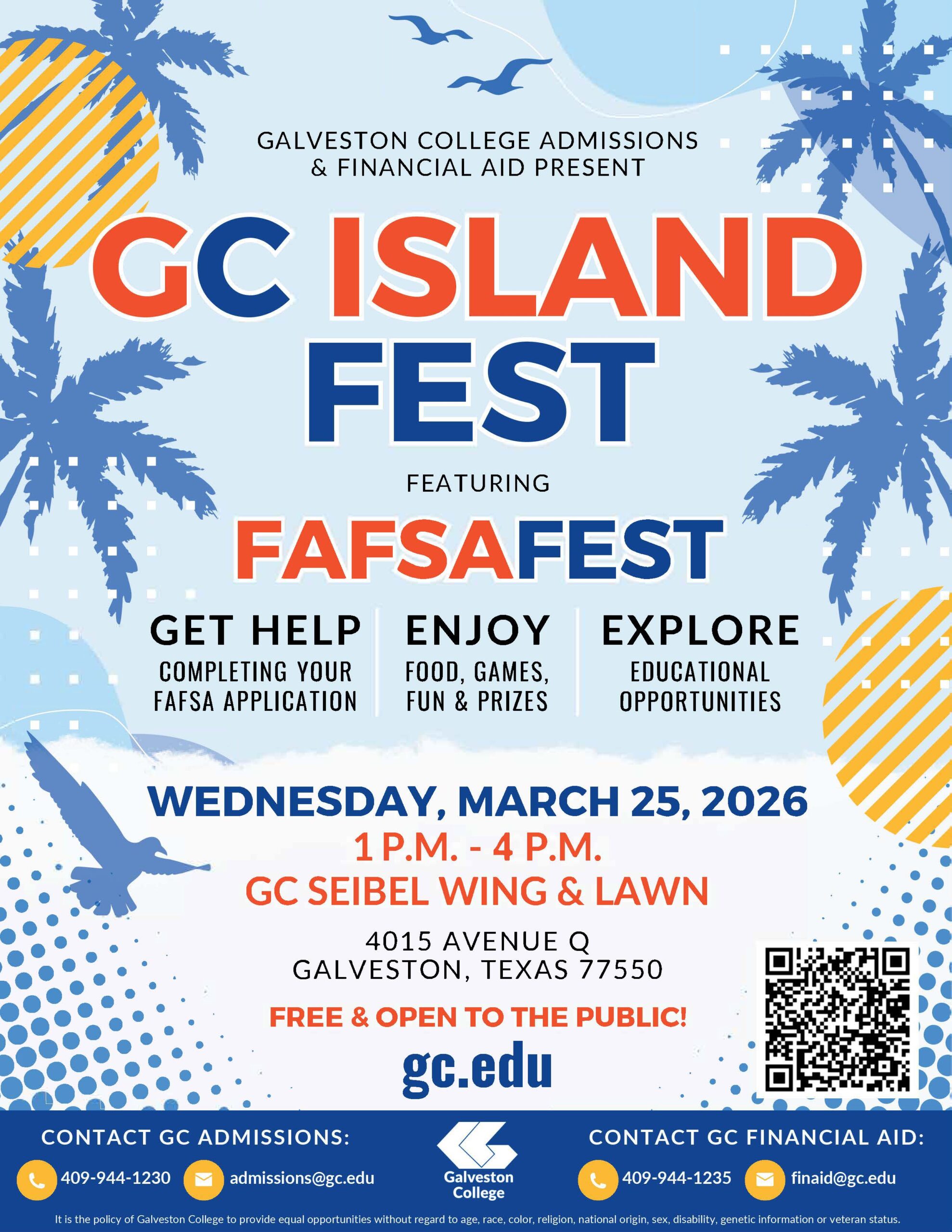 Why: Galveston College will host the 2026 Island Fest featuring FAFSA Fest on Wednesday, March 25, 2026, from 1 to 4 p.m., at the college’s main campus, located at 4015 Ave. Q in Galveston. The event is FREE and OPEN to the public.