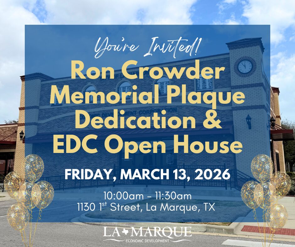 Ron Crowder Memorial Plaque Dedication event on Friday, March 13, from 10:30 am-11:30 am. We will be unveiling a memorial plaque on our building in honor of Ron Crowder. Past and current Mayors of La Marque will also be sharing a few remarks about Ron Crowder’s legacy at this event.