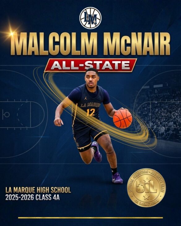 The accolades keep coming for La Marque boys’ standout Malcolm McNair, who was selected to the Class 4A All-State team. McNair helped the Cougars to a 41-2 record and a trip to the 4A-2 state finals.