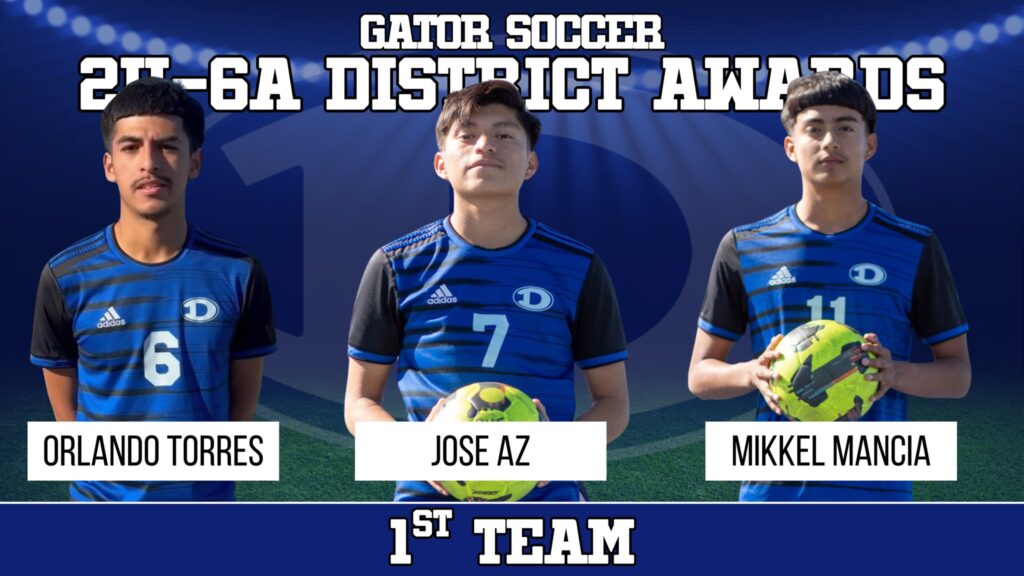 Both the boys’ and girls’ soccer teams of Dickinson High School received their share of honors when the District 24-6A teams were announced. The Gators girls had four players on the first and second teams, and added eight players to the district’s All-Academic team. The boys were highlighted by Ethan Garcia being named the 24-6A Defensive Player of the Year while having three players each on both the first and second teams.