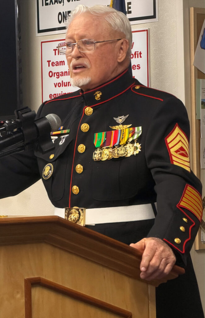 “During the battle of Iwo Jima 7,000 Marines lost their lives, another 20,000 military personnel were wounded. Eighteen thousand Japanese soldiers were killed and 1,083 were captured. That is why when I am wearing my Dress Blues I carry with me ashes from Iwo Jima,” said Wiggins, as he showed the audience his small vial of ashes.