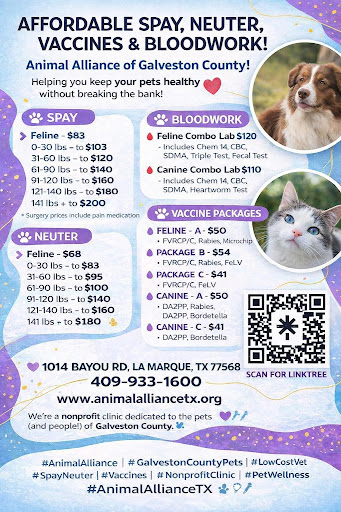www.animalalliancetx.org We’re a nonprofit clinic dedicated to serving the pets (and people!) of Galveston