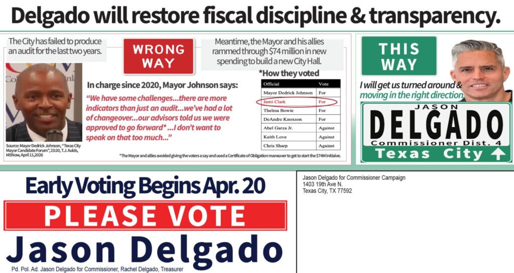 In the private sector, companies with a budget the size of Texas City’s annual $76 million dollar budget don’t get to brush off such incompetence with “we’ll, we got behind, so-and-so left…but we made a checklist now”. People get fired. Certainly, issuance of $74 million in new debt does not happen (except that’s precisely what Texas City did, las year).