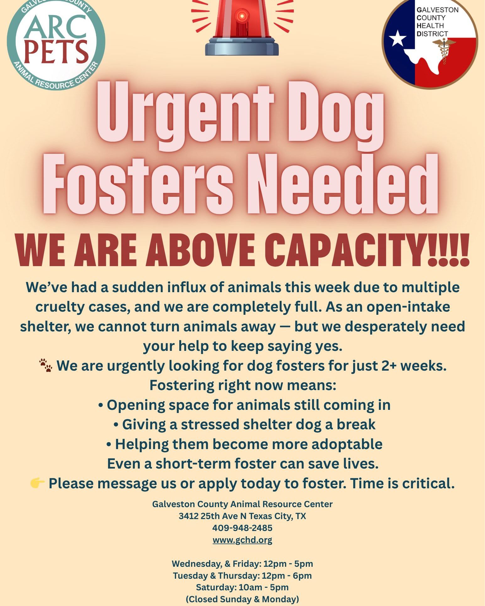 AT CAPACITY – URGENT FOSTERS NEEDED NOW