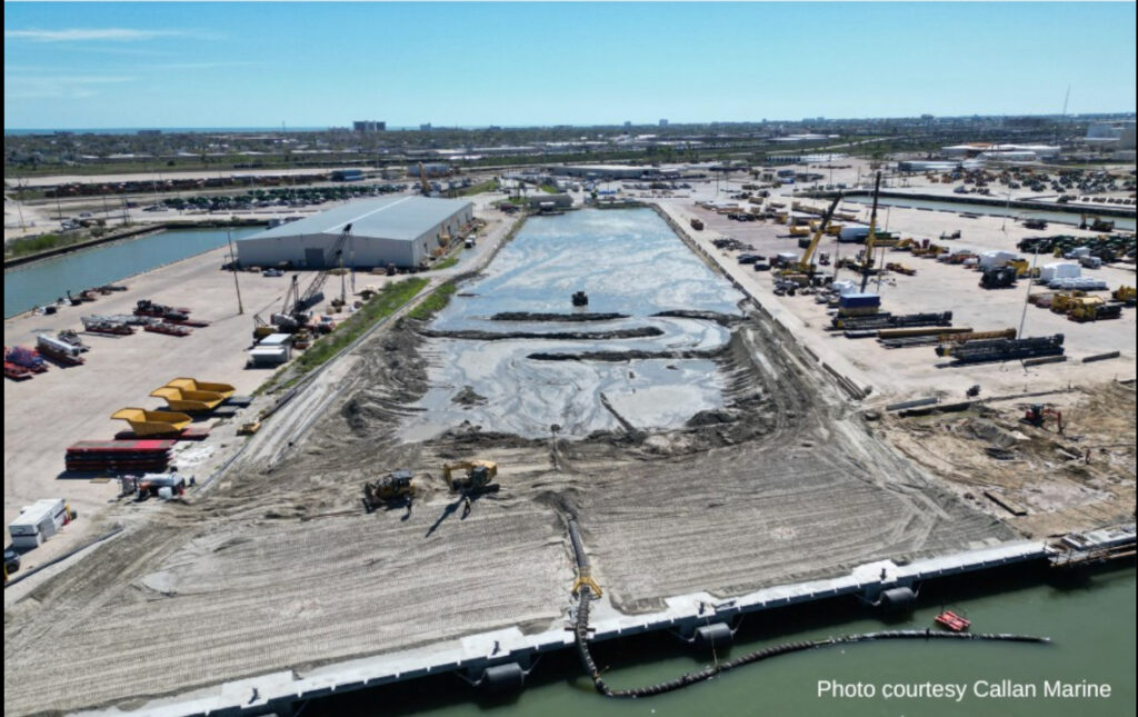 Galveston Wharves reached an important milestone in our $106 million cargo infrastructure improvement work in April by filling an outdated slip. Building the retaining wall and filling the slip is a major engineering feat that will add more than six acres of cargo-handling area and generate significant revenue for the port.