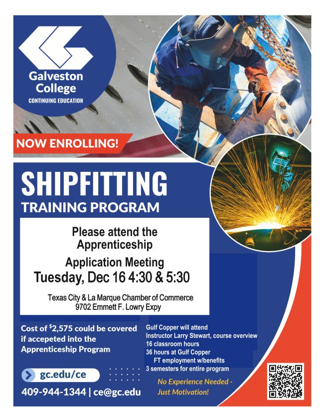 The Texas City-La Marque Chamber is thrilled to announce a significant step forward for local workforce development! Chamber member Gulf Coast Copper is partnering with Galveston College to launch a brand new Shipfitting Training Program. …