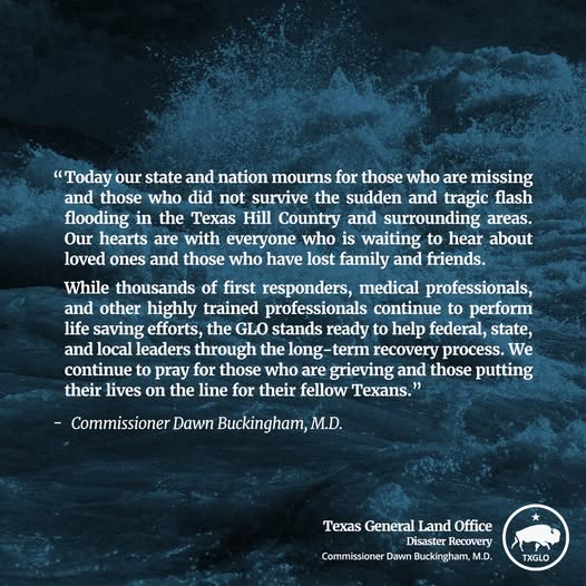 Commissioner Dawn Buckingham, M.D. released the following statement regarding the catastrophic flooding in the Texas Hill Country: “Today our state and nation mourns for those who are missing and those …