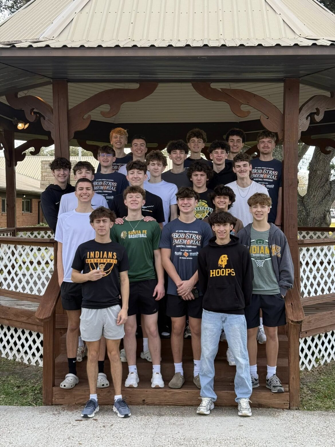 The Santa Fe boys’ basketball team recently took time out to volunteer at the city’s HIS Ministries. The players stocked shelves and organized storage areas.