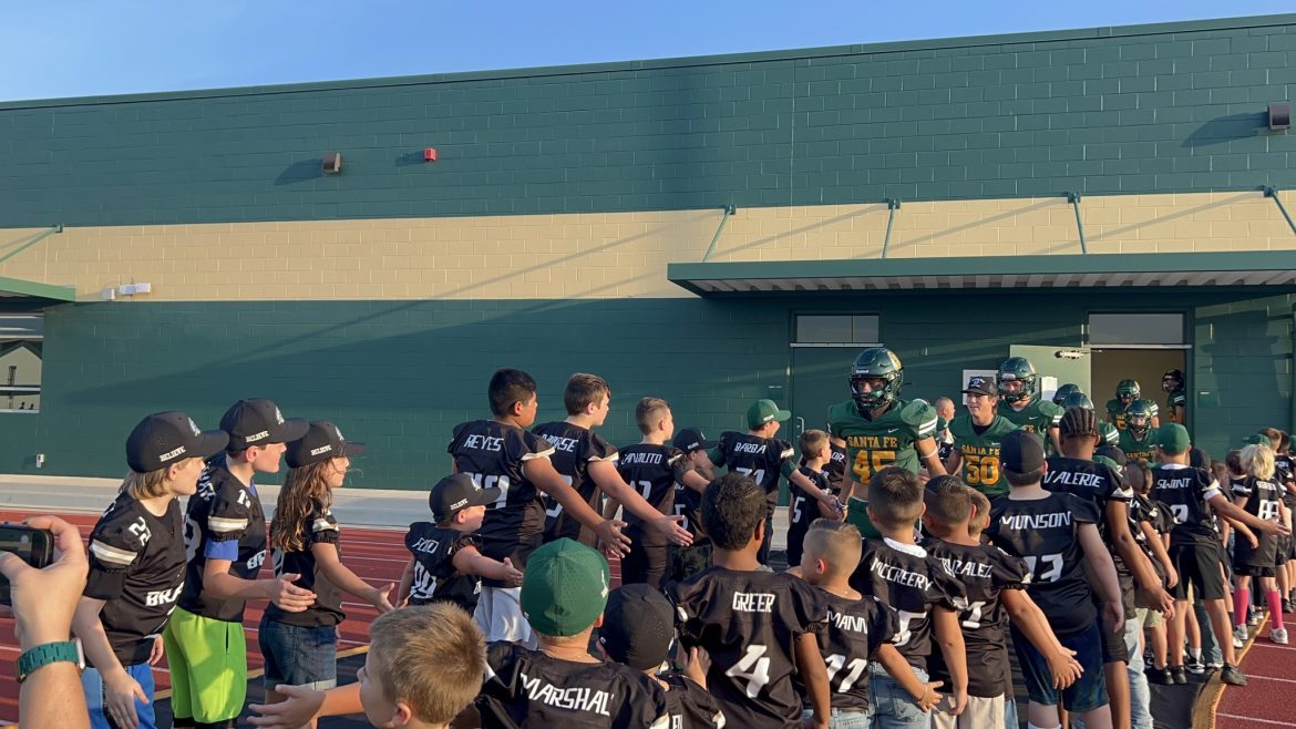 Santa Fe Youth Football players welcomed the Indians out of the locker room before Friday’s 48-14 win over visiting Vidor. Evening their record to 1-1, Santa Fe scored three touchdowns …